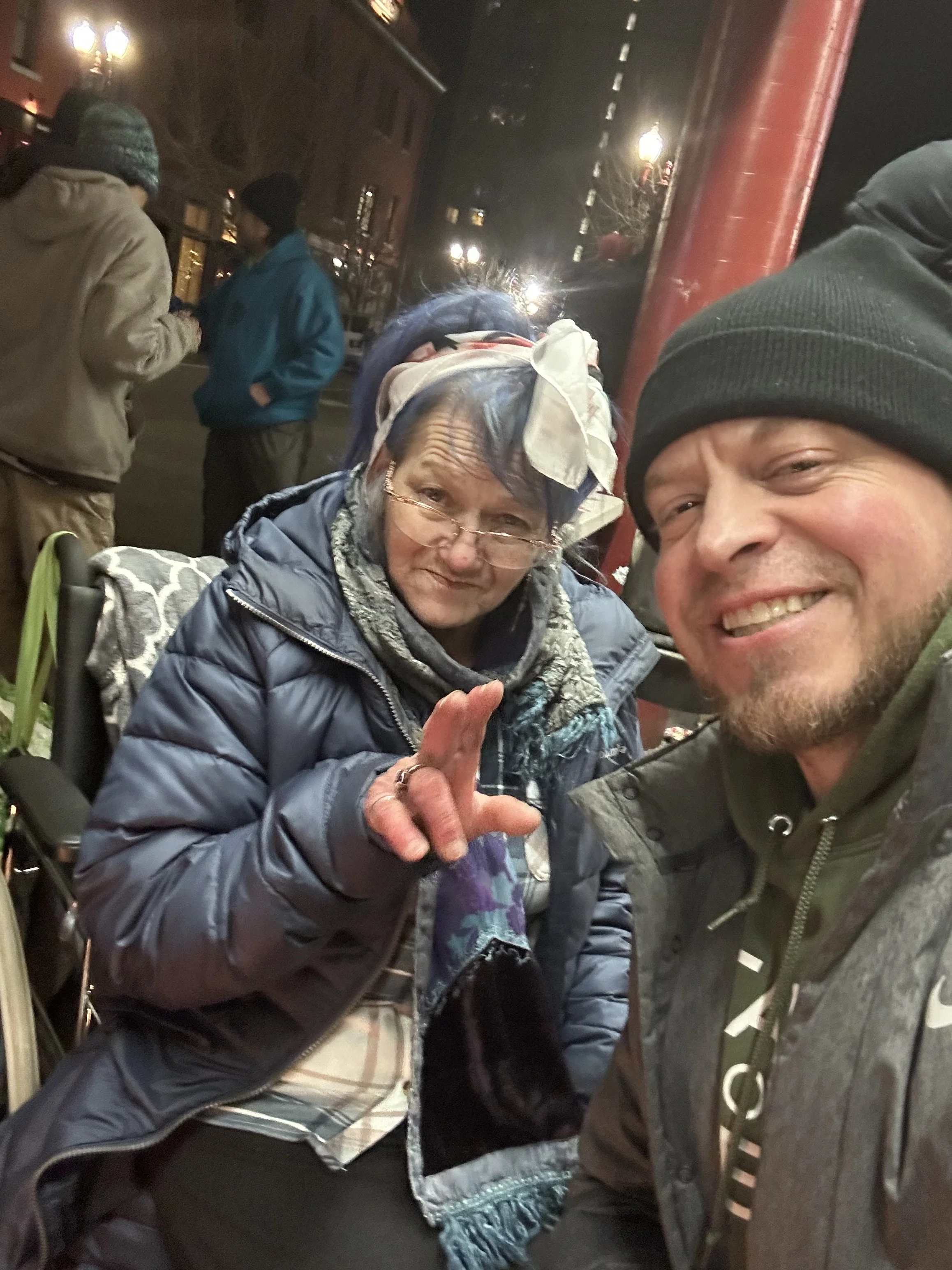 Cynthia, 56, has endured much adversity in her life. When she was 13 years old she had dreams of becoming a preacher. She entered foster care as a child and bounced around from home to home, never feeling loved or a sense of belonging. She turned to the streets for acceptance which led to drug use, unhealthy failed relationships, and homelessness. She has a heart for the Lord, but finds it hard to live that out on the streets. Due to many medical conditions, she experiences a lot of pain and resorts to self-medicating with drugs, which she says she knows is not the answer. After spending the evening with her, she dedicated her life to Jesus and started a treatment program the next day!